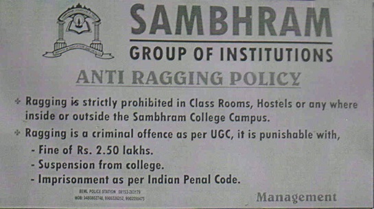 Notice Board is displayed in the College and Hostel that ragging is a criminal offence as per UGC, it is punishable with